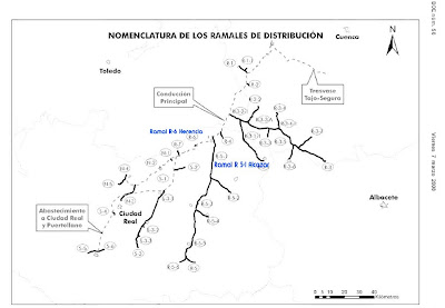 Abaixo está a parte do projecto que respeita aos tubos de ligação aos depósitos dos municípios para abastecimento da população, incluido no Plano Nacional da Água, destinado à distribuição a várias aldeias na província de Ciudad Real, Cuenca, Toledo e Albacete, da água potável que irá passar pela conduta principal em construção.