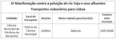 Agradecemos que se dirijam às freguesias e municípios da vossa área de residência uma vez que enviámos correio eletrónico a todos aqueles que integram a bacia do Tejo solicitando a mobilização dos seus fregueses e munícipes e a disponibilização de meios de transporte.
