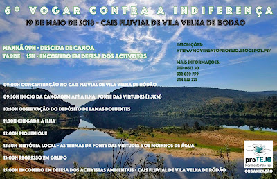 A tarde será dedicada a um encontro em defesa dos ativistas ambientais, no Caís fluvial de Vila Velha de Ródão, pretendendo apoiar todos aqueles que têm vindo a denunciar crimes ambientais e repudiar os atos de intimidação das empresas poluidoras que tentam condicionar o direito constitucional que todos os cidadãos têm de expressar livremente a sua opinião e o dever constitucional que todos os cidadãos têm de defender o ambiente, prestando um serviço público de elevada valia e respeitabilidade ao denunciarem as ações de uns poucos que muito têm contribuído para a degradação o rio Tejo e seus afluentes.