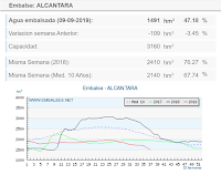 Além disso, os dados dos níveis de armazenamento das barragens de Cedillo e Alcântara permitiram verificar que, durante o mês de setembro, estas barragens procederam as descargas de água volumosas: