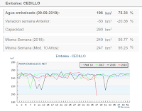 a) desde o início de setembro e até ao dia 9 de setembro, o nível de armazenamento reduziu-se 109 hm3 em Alcântara e 53 hm3 em Cedillo;