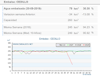 Apenas 1.900 hm3 (70%) do caudal anual de 2.700 hm3 fixado na Convenção foi enviado para Portugal de outubro de 2018 até ao final de julho de 2019 pelo que Espanha teria ainda de enviar 800 hm3 nos meses de agosto e setembro de 2019 para assegurar o cumprimento do caudal anual da Convenção de Albufeira.