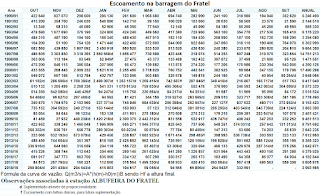 (1) Fonte: Escoamento observado na barragem do Fratel do Sistema Nacional de Informação de Recursos Hídricos.