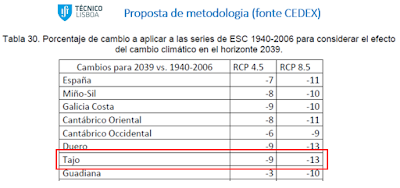 Reconhece-se que existe a possibilidade de Espanha fundamentar uma redução de caudais mínimos com base na previsão de redução em 15% das disponibilidades hídricas da bacia do Tejo espanhola devido aos efeitos das alterações climáticas, este sim um verdadeiro indicador. Essas projeções são semelhantes a todo o Sul da Europa, estando prevista uma redução das disponibilidades hídricas que deve ser tida em conta na atribuição de usos permitidos no lado Espanhol, antes de ser utilizada como argumento para reduzir as disponibilidades de água que deixam para Portugal.