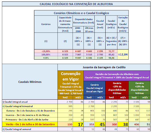Isto seria possível se tomássemos nas nossas mãos o caudal anual que já está acordado na Convenção de Albufeira, aquilo que é nosso e não de empresas hidroelétricas, e sermos nós a ditar como queremos que seja feita a sua distribuição total (100%) ao longo dos trimestres, semanas e dias.