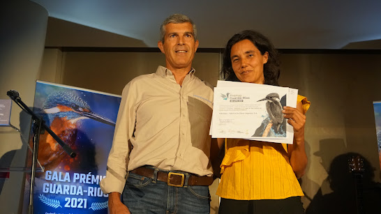 Paulo Constantino, porta voz do proTEJO, recebeu o Prémio das mãos de Catarina Miranda, a coordenadora do Projeto Rios Livres do GEOTA.