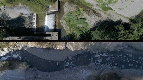 Antes e depois da remoção da barragem (Barragem Molló, Espanha) © Agència Catalana de l’Aigua