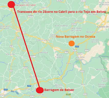 100 M€ para o transvase desde rio Zêzere no Cabril até ao rio Tejo em Belver;